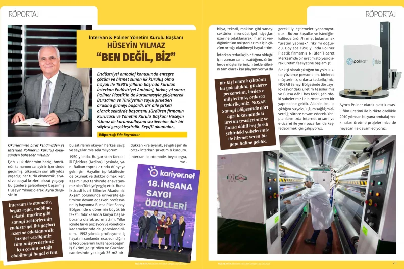 Yönetim Kurulu Başkanımız Sayın Hüseyin Yılmaz’ın NOSAB Ayna Dergisinin (Ocak-Şubat-Mart 2022) 28.sayısında vermiş olduğu röportaj…